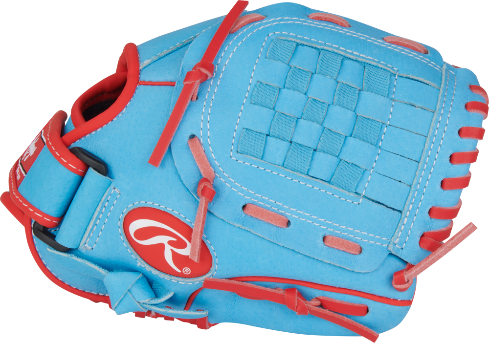 Tolle Handschuhe für die jungen Einsteiger bietet Rawlings mit der Sure Catch Serie. Neben einer Volllederausstattung bieten die Gloves weitere Features, die dem Nachwuchs den Einstieg erleichtern. Dazu gehört eine „sure catch“-Kerbe in der Wangenpolsterung, die das Schließen des Gloves erheblich erleichtert und so die Handschuhkontrolle erhöht. Der halb offene „Neo-Flex“-Back liefert das sichere Gefühl eines closed back mit der Flexibiltät eines offenen Handschuhrückens. Die Handöffnungsgröße kann zusätzlich über einen Klettverschluss variiert werden. Der Rawlings Sure Catch SC100JDCB kommt im coolen „Jacob DeGrom“-Design, bietet eine 10" Handschuhlänge und ein zusätzliches Hand- und Zeigefingerpolster. Die Fangaufgaben übernimmt ein geschlossenes Pro H-Web.