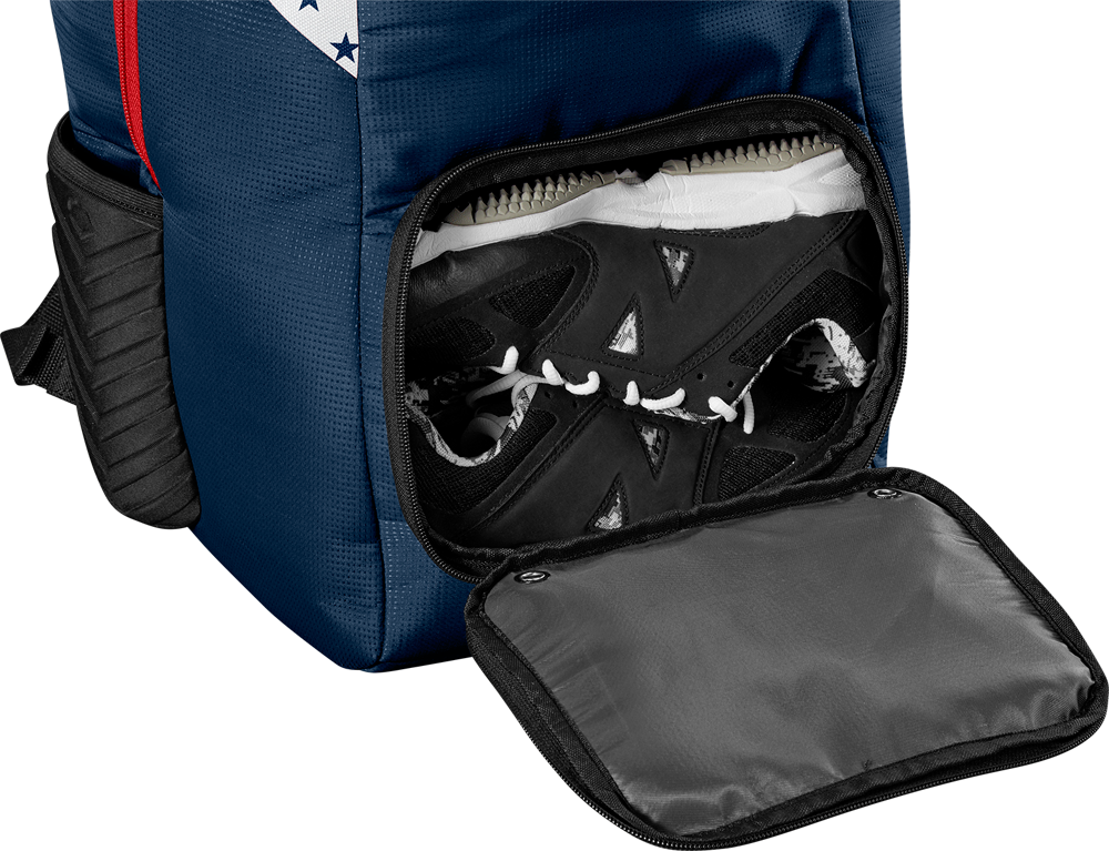 Der Standout Back Pack ist ein kompakter Baseballrucksack mit Platz für die alltägliche persönliche Ausrüstung. Das Hauptfach verstaut Helm und Handschuh, ein belüftetes Fach bietet Platz für die Schuhe, ein Fleece-Fach bietet Platz für das Handy. Bis zu zwei Schläger können in den außenliegenden Bat Sleeves verstaut werden. Gepolsterte Tragegurte und ein gepolstertes Rückenteil erhöhen den Tragekomfort.