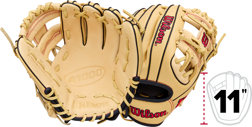 Mit der A1000 Serie Serie nimmt Wilson den aktuellen Trend zum hochwertigen, aber stärker vorgeölten Baseballhandschuh auf. Wer also bei der Suche nach einem hochwertigen Glove vor der Einspielzeit und dem Preis der A2000 Serie zurückschreckt, der ist bei der A1000-Serie bestens aufgehoben. Hergestellt in derselben Produktionslinie und von denselben Fachleuten, die an den legendären A2000 Gloves arbeiten, bieten die Gloves der A1000 Serie vorgeöltes Optima Rindsleder für eine reduzierte Einspielzeit und tolle Haltbarkeit. Der 11" lange A1000 WBW10395511 PF11 hinterlässt mit seiner flachen Infield Pocket und dem bewährten H-Web einen grundsoliden Eindruck. Um den Formerhalt zu unterstützen verbaut Wilson, wie in der A2000-Serie, das Dual Welting (zwei Nähte auf der Außenseite der Fingersegmente), außerdem spendiert Wilson dem Glove eine Double Palm (zweilagiges Leder) im Handflächenbereich. Der WBW10395511 PF11 verfügt außerdem über einen open back mit „Pedroia Fit“, bei dem die Größe des Handeinschubs minimal verkleinert wird.