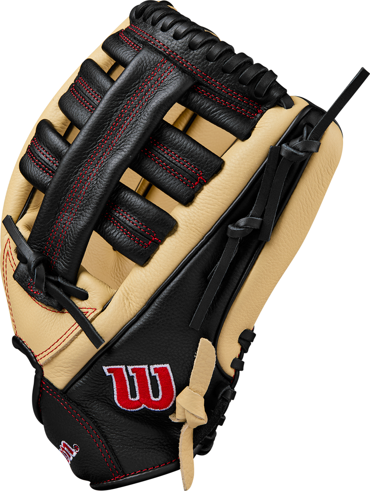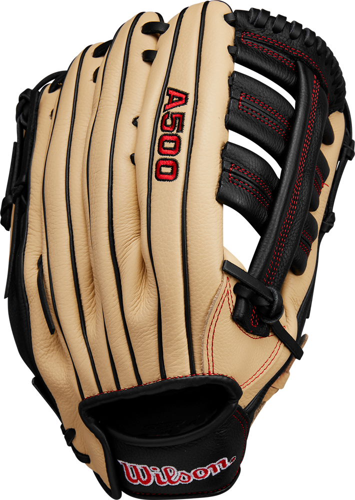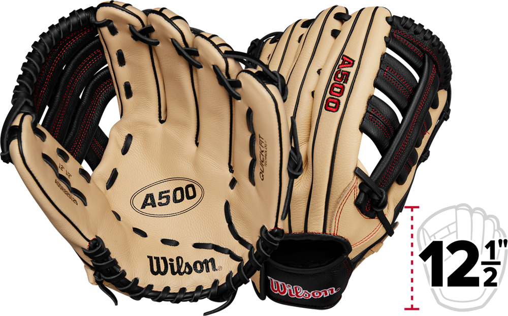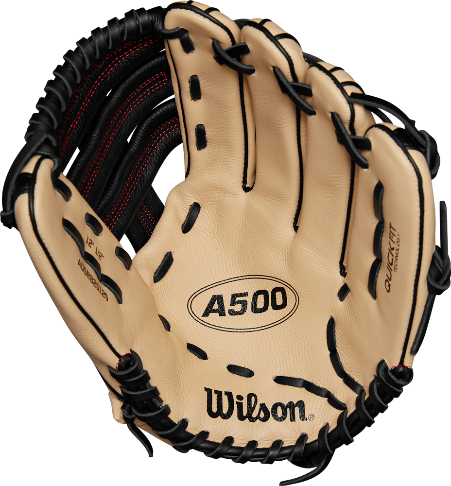 Mit der A500-Serie stellt Wilson die leichtesten Vollleder Gloves auf dem Markt vor. Dass dabei die Ausstattung nicht zu kurz kommen muss, beweisen Features wie das Dual Welting (zwei Nähte auf der Außenseite der Fingersegmente) und das Double Palm (zusätzlich aufgenähtes Lederstück in der Handinnenfläche), die die Formgebung und den Formerhalt verbessern. Dank der Vorölung sind die A500 Gloves quasi aus dem Regal spielbereit. Der A500 WBW102544125 125 ist mit seiner 12 1/2“ Länge als Oufield-Modell für den (älteren) Nachwuchsspieler, der die größere Handschuhlänge (und damit mehr Gewicht) bereits koordinieren kann. Das Quick-Fit Wrist System (ein elastischer Gummizug bringt die Handöffnung automatisch auf die passende Größe) und ein flexibles Single Post Web erleichtern dabei vor allem den Youngstern den Einstieg.