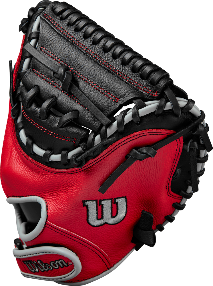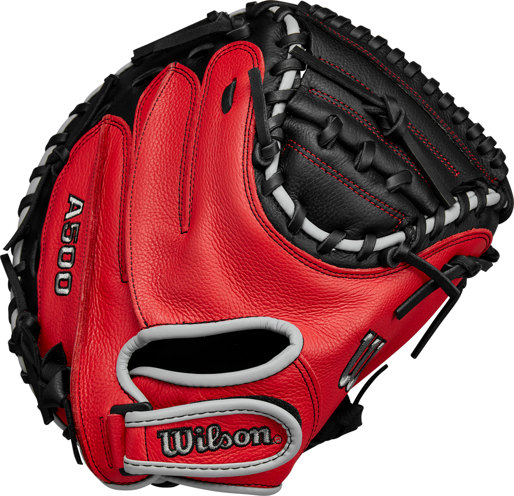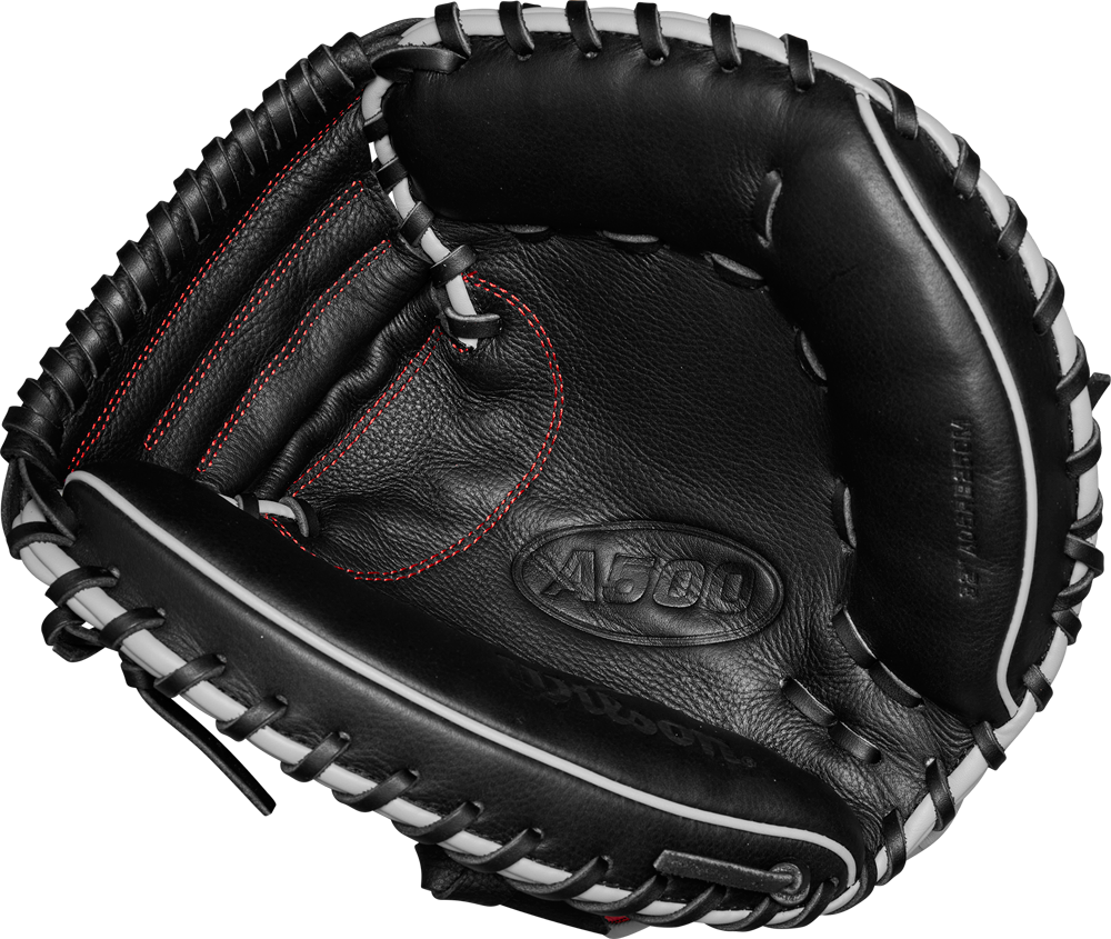 With the A500 Series, Wilson introduces the lightest full leather Gloves on the market. While saving on the weight, Wilson does not save on the features: the “Double Palm” (additional leather patch on the inside of the palm area) are designed to increase shape retention and are usually found on higher priced series. Thanks to their pre-oling, the A500 Gloves are virtually game-ready from the shelf. The A500 WBW10016132 CM Catcher Mitt is designed for the advanced Youth Catcher, as it offers a larger 32” circumference with more catching surface but also more weight. The flexible Half Moon Web and the open back provide the young player with a controllable Glove that makes catching easy. The diameter of the hand opening can be individually adjusted via a Velcro closure.