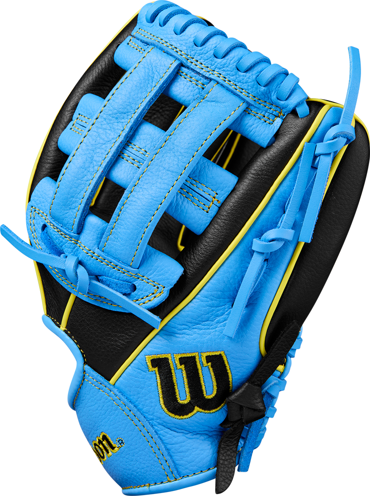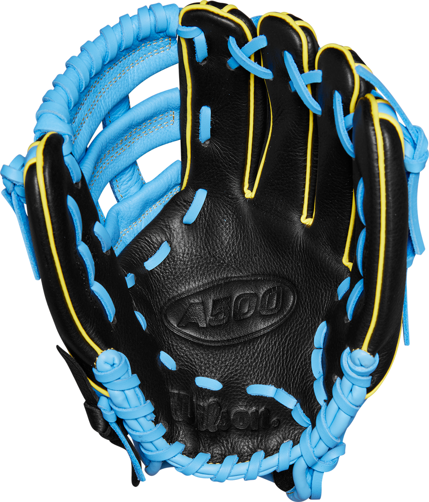 With the A500 Series, Wilson introduces the lightest full leather Gloves on the market. While saving on the weight, Wilson does not save on the features: the dual welting (two leather seams on the back of each finger segment) and the “Double Palm” (additional leather patch on the inside of the palm area) are designed to increase shape retention and are usually found on higher priced series. Thanks to their pre-oling, the A500 Gloves are virtually game-ready from the shelf. The A500 WBW102536105 105 features a 10 1/2” length and is the perfect Glove for tomorrows stars. The Quick-Fit wrist (elastic band automatically adjusts the hand opening to the correct size) and the flexible Single Post Web provide the young player with a controllable Glove that makes catching easy.