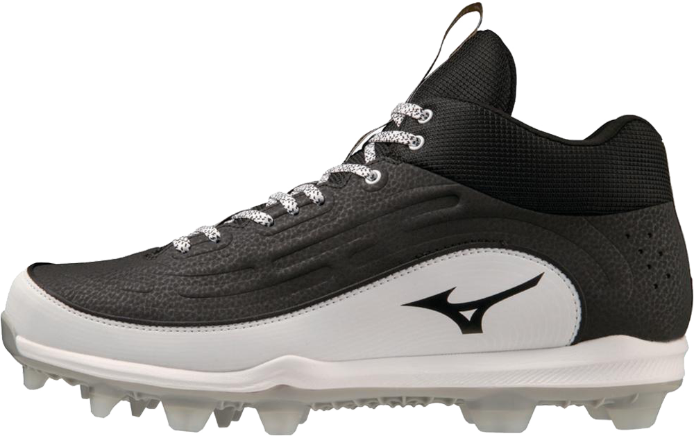 Lightweight, mid-cut Baseball and Softball shoe with TPU cleats in the new Mizuno “I” shape that offer more traction and less pressure points. The shoes upper is made from lightweight and durable synthetic leather with an extra abrasion resistant toe plate added to the toe area. The new C-Flex outsole offers increased stability, flexibility and traction. The mid sole offers a double stacked full length EVA cushioning.