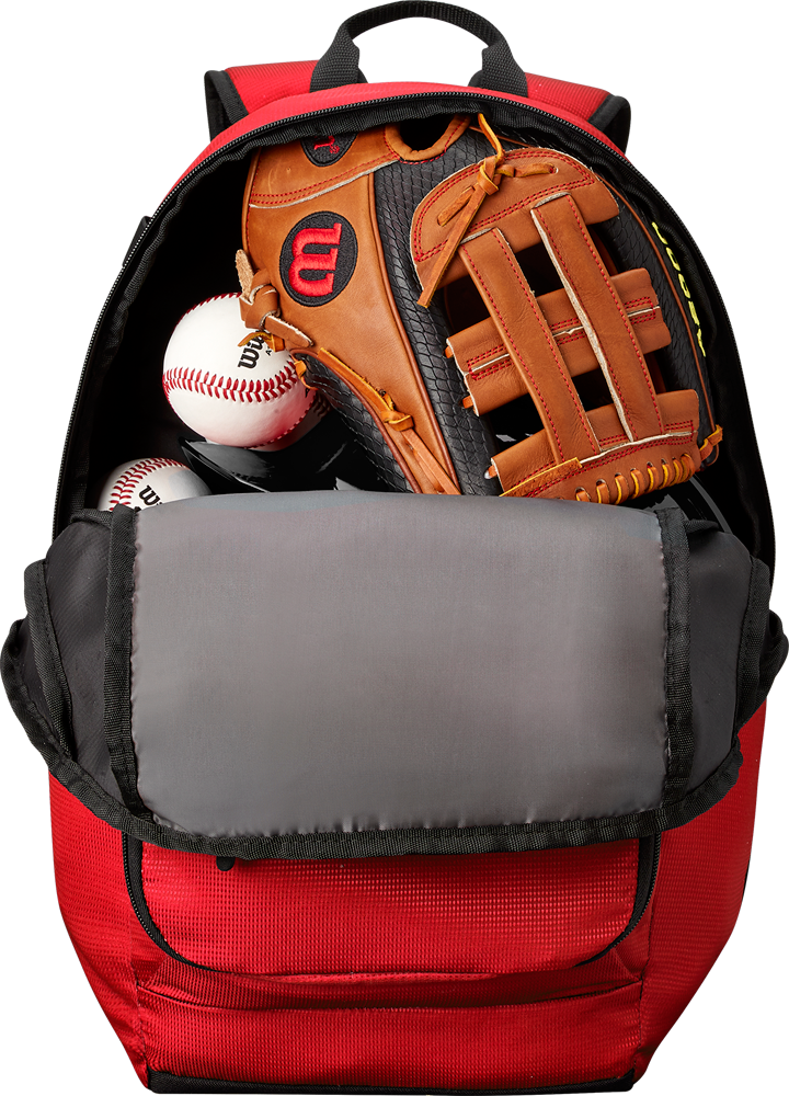 The Evoshield SRZ1 Youth Back Pack is a compact Baseball Back Pack for youth players that holds their everyday gear. The main compartment holds a youth glove and helmet and additional small gear. Two mesh side pockets offer bat storage space and can double as water bottle holders. The front offers a small compartment for valuables and two tubular webbings that can hold Elbow Guard or Batting Gloves. Padded shoulder straps and back paneling increase comfort.