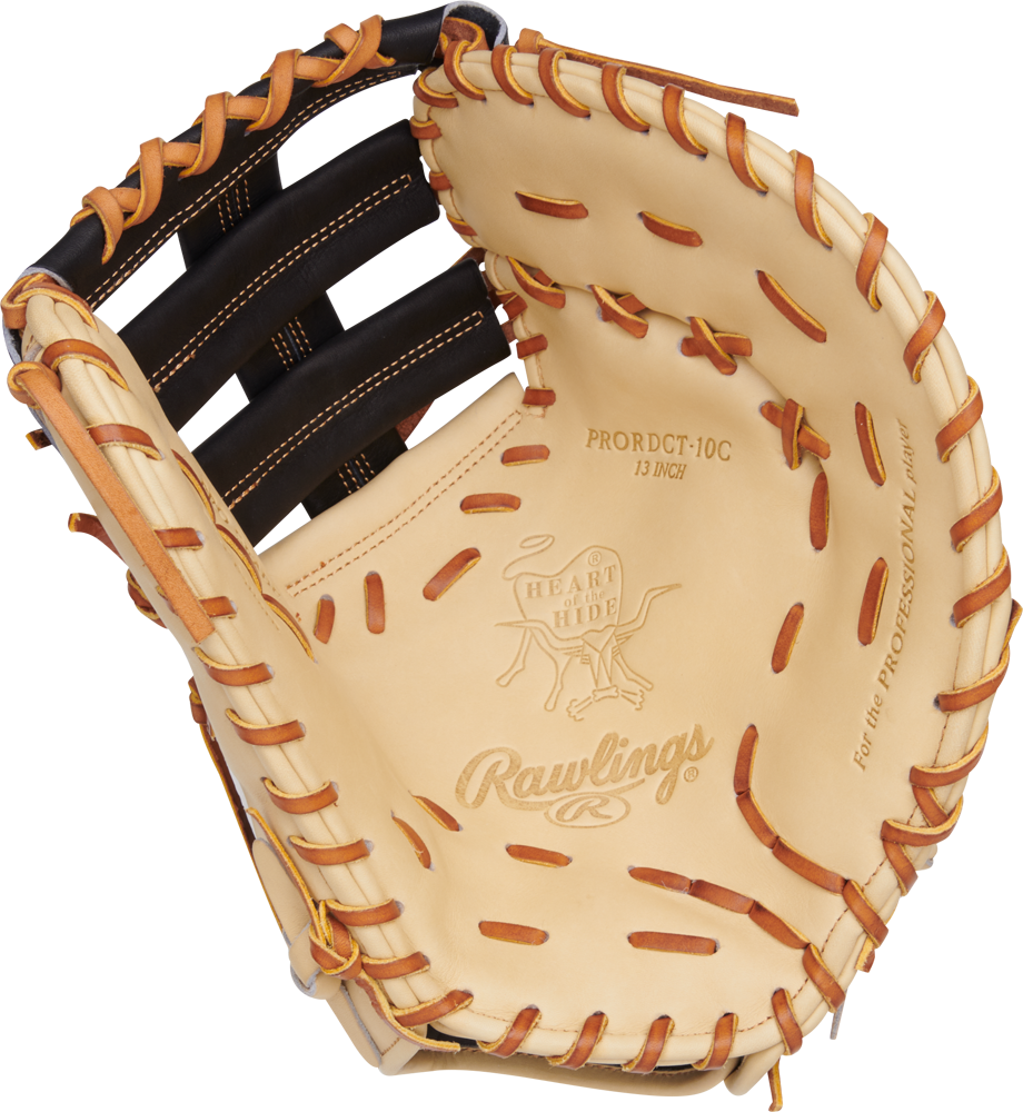 For decades, the Heart of the Hide Gloves have earned a reputation for top-of-the-line Fielding Gloves. After a rigorous selection process, a mere 5% of the hides are deemed worthy to become a Heart of the Hide Glove – and you can feel that. The Gloves deliver high-end quality for the demanding player that values a quality feel and craftsmanship. The PRORDCT-10C First Base Mitt features a solid 13" length. A single bar double post Web provides a deep pocket for secure catches and scoops. An open back allows for a flexible fit on the catching hand.