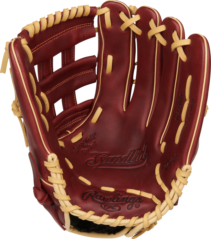 The Sandlot Series Gloves add color to the Game. Their Sherry colored leather is a real eye-catcher. But they have more to offer than just good looks as the Gloves are aösp technically up to todays standards. Pre-oiled full grain leather provides a soft shell that only needs minimal break-in. A Zero Shock palm pad adds hand protection, as does the outside finger pad. The 12 3/4" S1275HS Outfield Glove also features a deep H-Web and an open back.