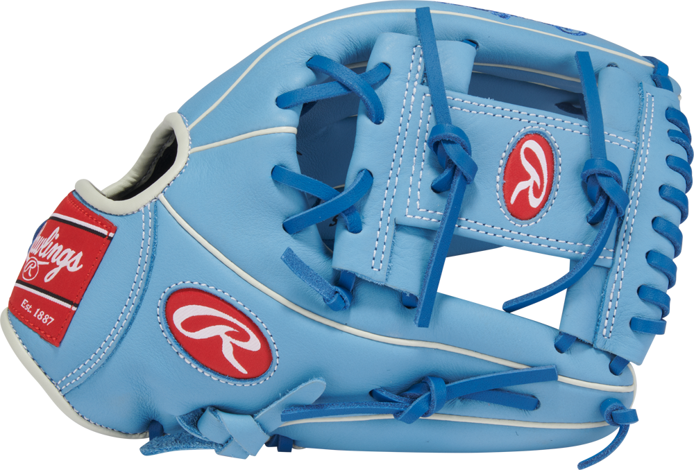 Rawlings introduces the Select Pro Lite Series, a Glove series specifically designed for the youth player whose level of play doesn’t match the beginners Glove anymore and who is looking for a quality upgrade with a youth hand opening. The Select Pro Lite Gloves feature a solid pre-oiled full grain leather shell (expect some break-in time), a palm- and index finger pad and cushioned finger back linings for increased comfort. The 11 1/2” SPL150BBCB flashes a cool “Bo Bichette”-Glove look along with a flexible open Pro I-Web and an open back for a relaxed fit on the hand. The diameter of the hand opening has been reduced to give the smaller youth hand a tighter fit. The width of the finger stalls has also been minimized to increase Glove control and fit.