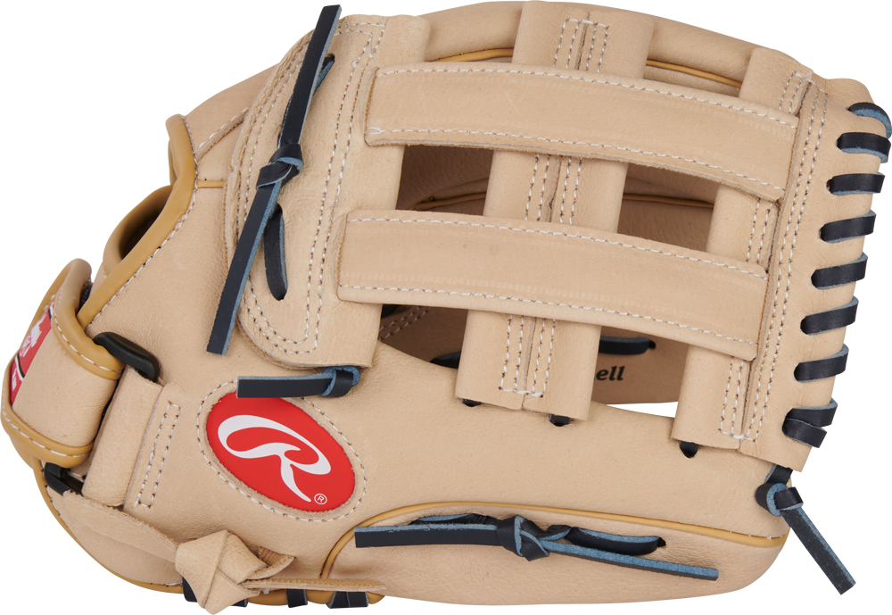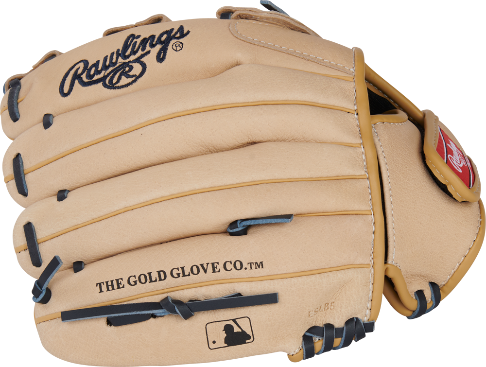 Offered as a “Hybrid”-Glove (mesh back, leather palm) a few years ago, the Sure Catch Series changed course. The Gloves now feature a full leather shell. But don’t worry, Rawlings doesn’t loose sight of the youngsters’ needs. New features on the Sure Catch Series incude a “sure catch”-notch in the heel area of the glove. This notch reduces the hand strength required to squeeze the glove. The Neo-Flex back delivers the secure fit on the hand as if wearing a closed back glove, but offers the flexibility found in open back gloves. The size of the hand opening can be adjusted via a Velcro strap. The Rawlings SC115CY offers a cool „Christian Yelich“-Design, an 11 1/2" length and an additional palm and index finger pad for added hand protection. An open H-Web takes care of the fielding duties.