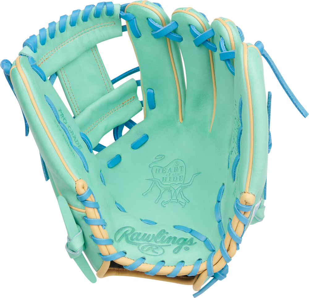 For decades, the Heart of the Hide Gloves have earned a reputation for top-of-the-line Fielding Gloves. After a rigorous selection process, a mere 5% of the hides are deemed worthy to become a Heart of the Hide Glove – and you can feel that. The Gloves deliver high-end quality for the demanding player that values a quality feel and craftsmanship. The Rawlings PROR2175-2M offers an 11 3/4" length making it a quality partner for the fast play between the bases. The shallow flexible Pro I-Web makes the glove-to-hand-transfer easy and has no problem dealing with hard line drive infield shots as well. An open back provides a relaxed fit on the catching hand.