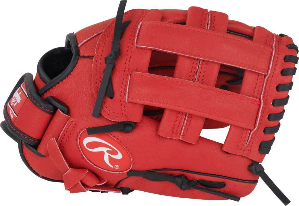 The Rawlings Sure Catch Series offers great full leather Gloves for the young player who is getting started with features that make life a lot easier for the youngster. These features include a “sure catch”-notch in the heel area of the glove. This notch reduces the hand strength required to squeeze the glove. The Neo-Flex back delivers the secure fit on the hand as if wearing a closed back glove, but offers the flexibility found in open back gloves. The size of the hand opening can be adjusted via a Velcro strap. The Rawlings SC105CCC offers a cool „Corbin Carroll“-Design, a 10 1/2" length and an additional palm and index finger pad for added hand protection. An open Pro H-Web takes care of the fielding duties.